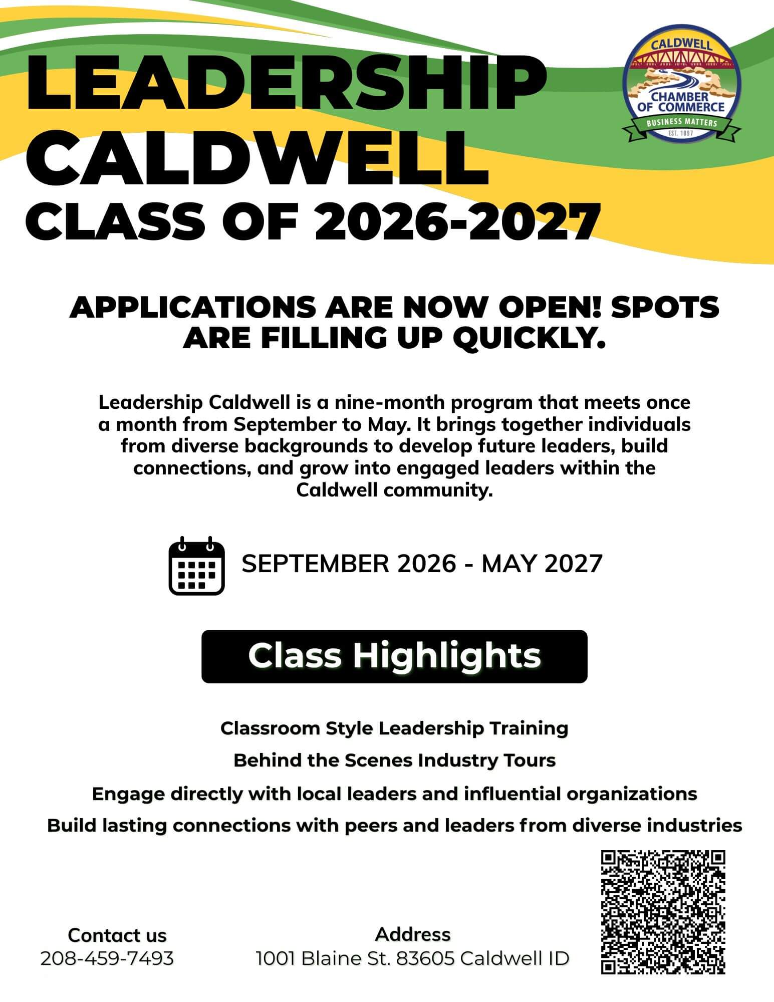 Our Leadership Caldwell program, running from September through May with a graduation at our Noon Break Lunch event in June, is designed to cultivate informed, skilled, and actively involved community leaders who are passionate about Caldwell’s growth and success.